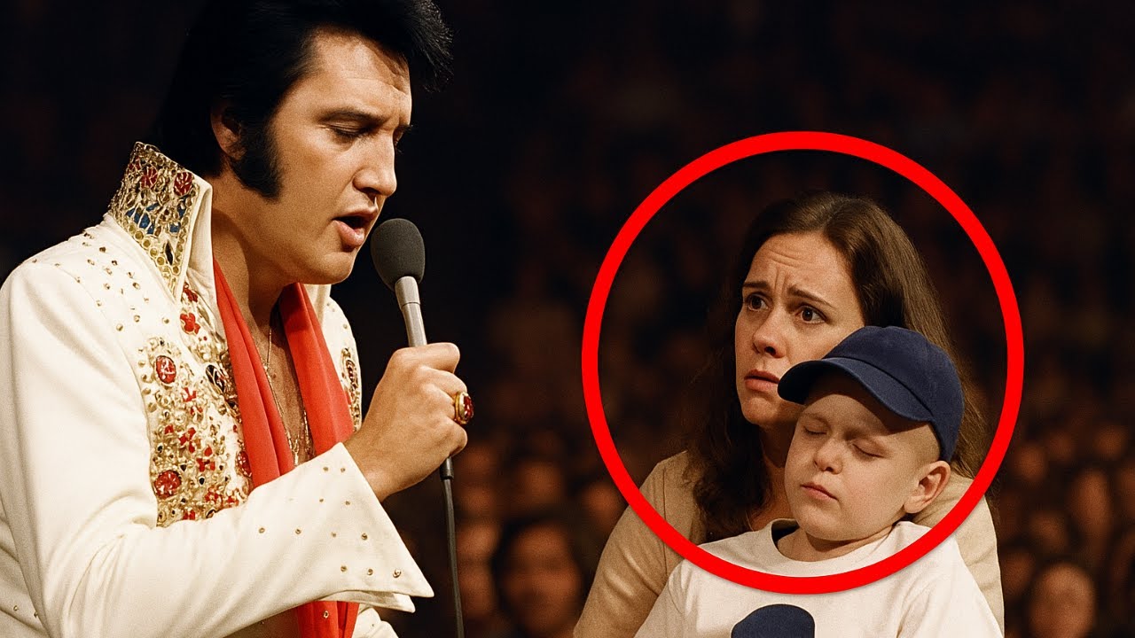 A young mother, tears trembling on her lashes, held a tiny boy—7 years old, frail, pale, wrapped in a blanket against the cold reality of illness. His name, whispered through the crowd, barely traveled beyond her trembling lips. But Elvis heard it. He always heard what others missed.